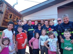 Agentes do Departamento de Trânsito participam de aniversário de gêmeos