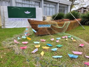 A secretária de Educação e Cultura, Naiara Tres, agradeceu a presença de todos e salientou que a feira é feita de forma comunitária, com a participação da comunidade escolar, livrarias e talentos locais. Naiara também falou sobre a simbologia do barco que estampa o material de divulgação desta edição. “Depois da enchente devastadora do ano passado, o barco se tornou um sinal de resiliência, de esperança e de recomeço”.