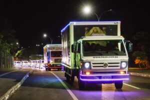 Espalhando o clima natalino pela cidade, a Caravana Iluminada percorrerá as principais ruas de Lajeado neste sábado, 10/12, e no próximo domingo, 18/12, Neste sábado, a saída será às 20h, do Parque Professor Theobaldo Dick. As famílias poderão apreciar a passagem dos veículos iluminados nas calçadas. A ação integra a programação do Natal no Coração 2022. Neste sábado, participarão os caminhões do Corpo de Bombeiros de Lajeado e das empresas Docile, Nimec Logística, Fruki Bebidas e Grupo Scapini.
