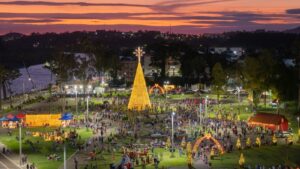 Instalada no Parque Ney Santos Arruda, a Casa do Noel, da Aldeia do Noel, atraiu 15.272 visitantes desde que foi aberta ao público, no dia 21/11. Integrando a programação do Natal no Coração 2025, da Prefeitura de Lajeado, a Aldeia contou com atrações como cenários fotográficos, árvores decoradas, iluminação especial, feira de artesanato e shows. A programação teve como tema “Laços que conectam todos nós”, com o objetivo de promover o encontro da comunidade com o rio, oferecendo atividades culturais, artísticas e náuticas.
