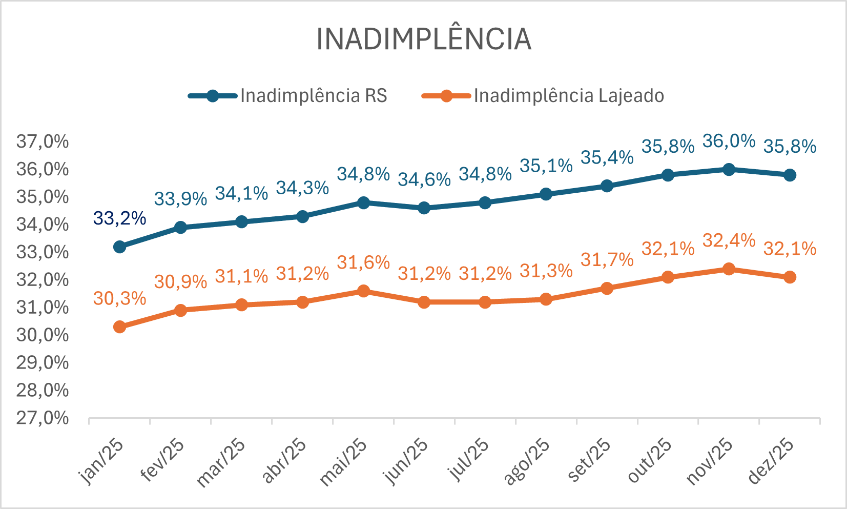 Após um novo aumento em novembro, o que levou ao recorde da série histórica com 32,4%, a inadimplência no comércio de Lajeado teve uma leve