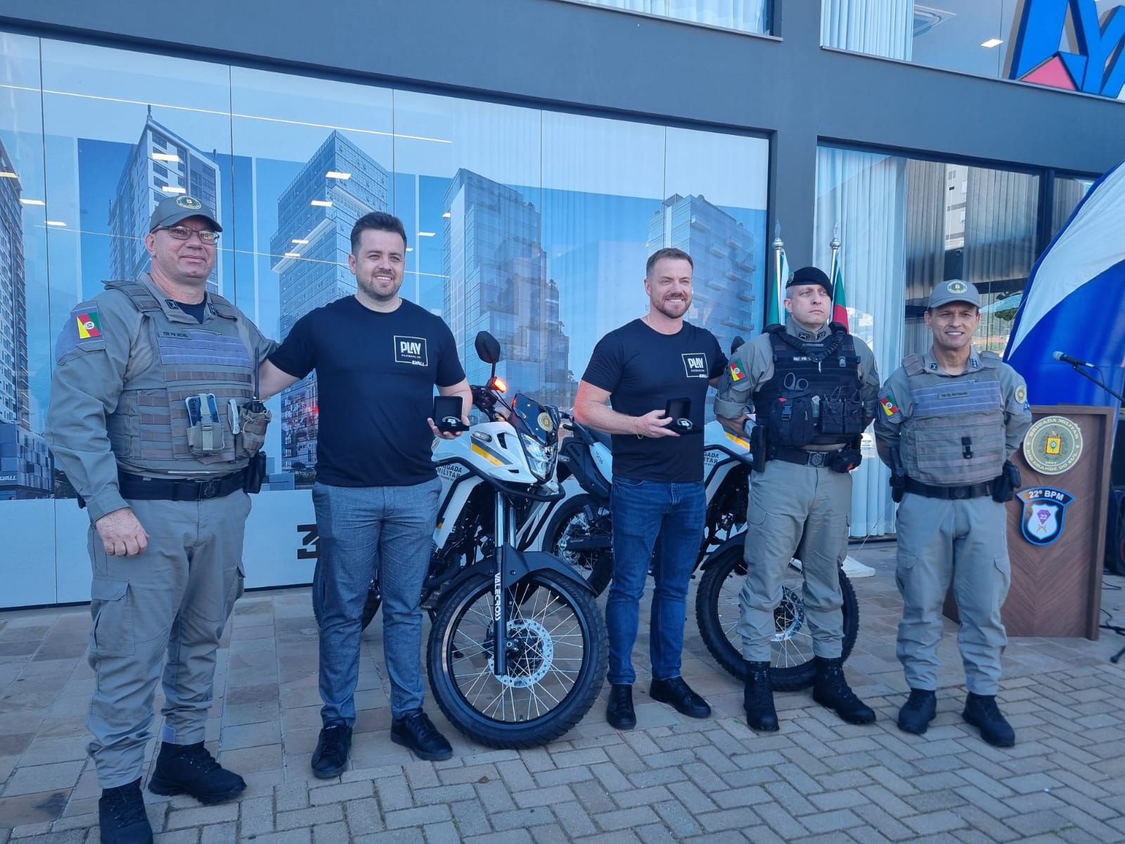 A Brigada Militar recebeu a doação de duas motocicletas XRE 300, entregues pela Lyall Construtora, de Lajeado. Os veículos serão destinados à ROCAM (Rondas Ostensivas