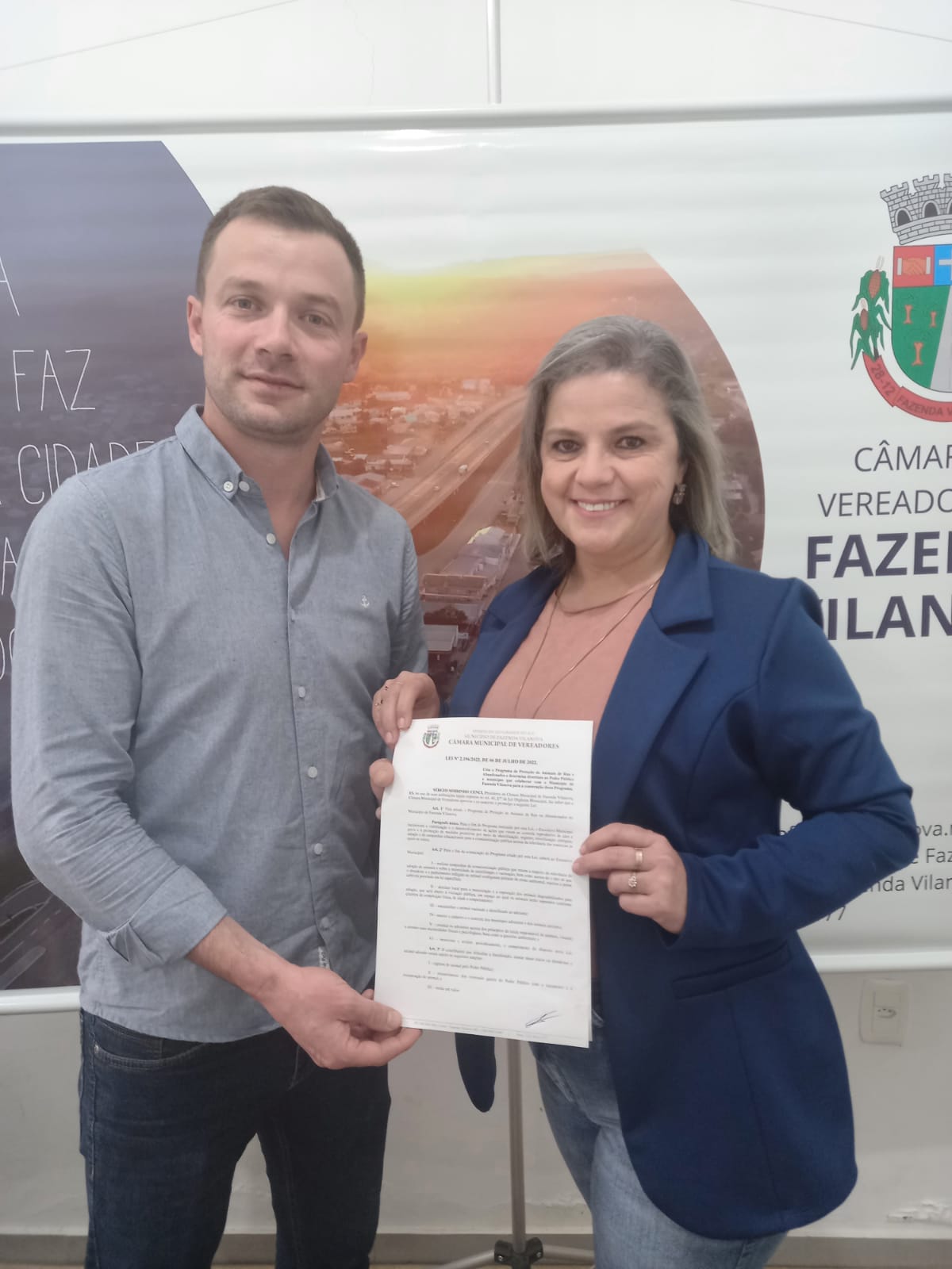 Na última quinta-feira, (07), o presidente do Legislativo de Fazenda Vilanova Sérgio Cenci Sobrinho, o “Serginho” (PP), sancionou a Lei do Projeto Substitutivo ao Projeto