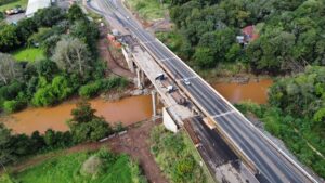 A partir da manhã desta quinta, (17), a CCR ViaSul realiza o içamento de três vigas da ponte sobre o Arroio Forquetinha, no km 339 da BR-386. A ação, que deve durar até o meio da tarde, é mais uma etapa das obras de alargamento da estrutura que integram o cronograma de ações da duplicação da rodovia. Estas são as últimas vigas das seis novas pontes construídas e alargadas no trecho da duplicação. A Concessionária destaca que não será necessário interromper o tráfego, uma vez que as atividades acontecerão fora do eixo da rodovia.