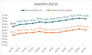 Evolução da inadimplência em Lajeado e no RS durante o ano de 2025