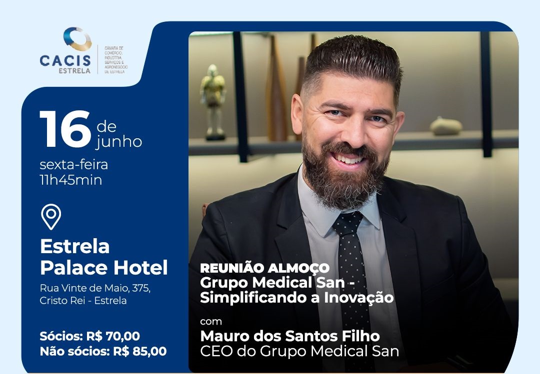 Mauro dos Santos Filho será o palestrante da reunião-almoço da Cacis, em Estrela, nesta sexta-feira Nesta sexta-feira, dia 16 de junho, a Câmara de Comércio,