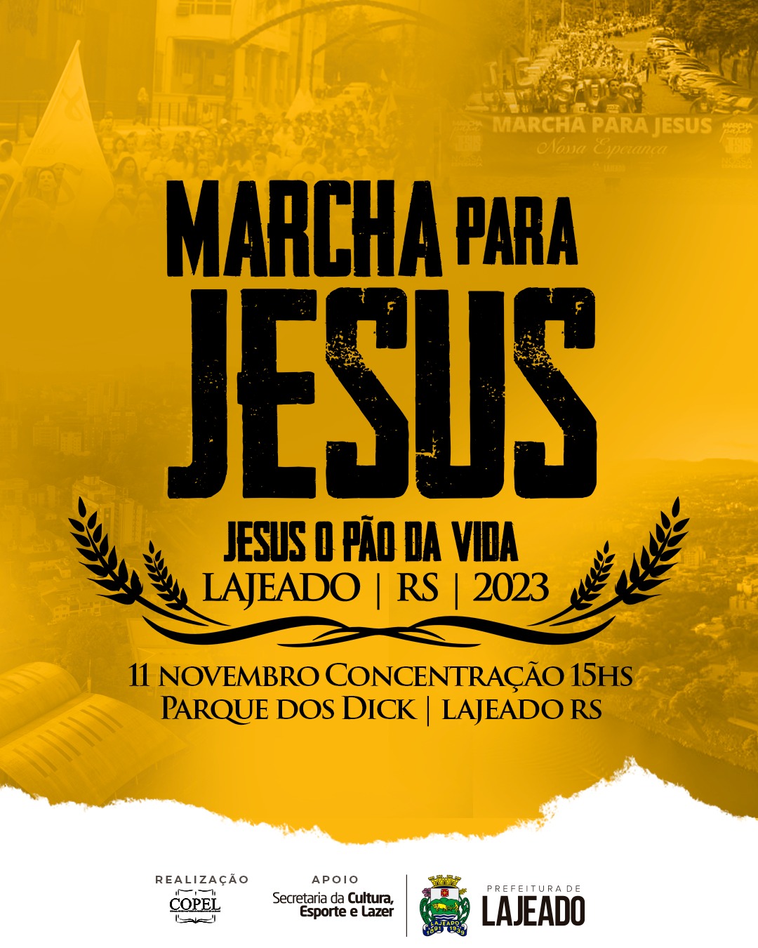 Lajeado recebe neste sábado, 11/11, o evento Marcha para Jesus, no Parque Professor Theobaldo Dick. O evento religioso é organizado pelo Conselho de Pastores Evangélicos