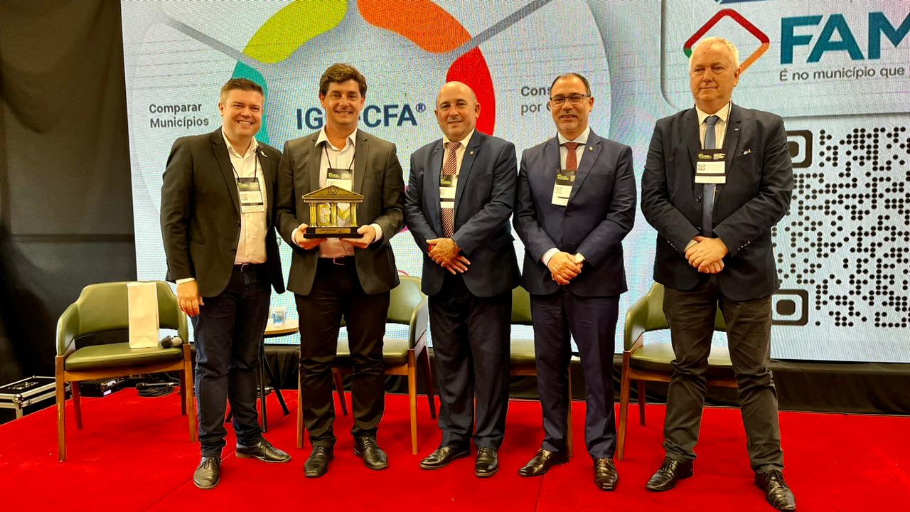 Representando o Município de Lajeado, o prefeito Marcelo Caumo recebeu, nesta terça-feira (6/06), a premiação da 1ª Edição do Prêmio IGM/CFA de Governança Municipal –