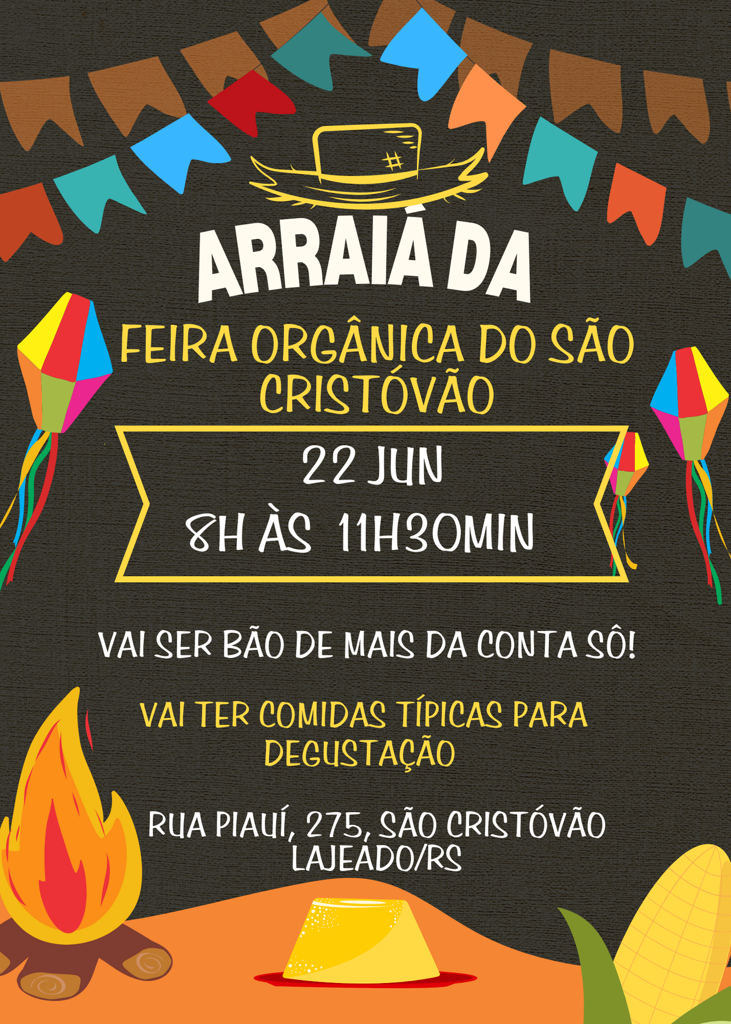 A Feira Orgânica do bairro São Cristóvão, de Lajeado, realiza um arraial de São João nesta quinta-feira, 22/06. Os feirantes aproveitam a data para oferecer