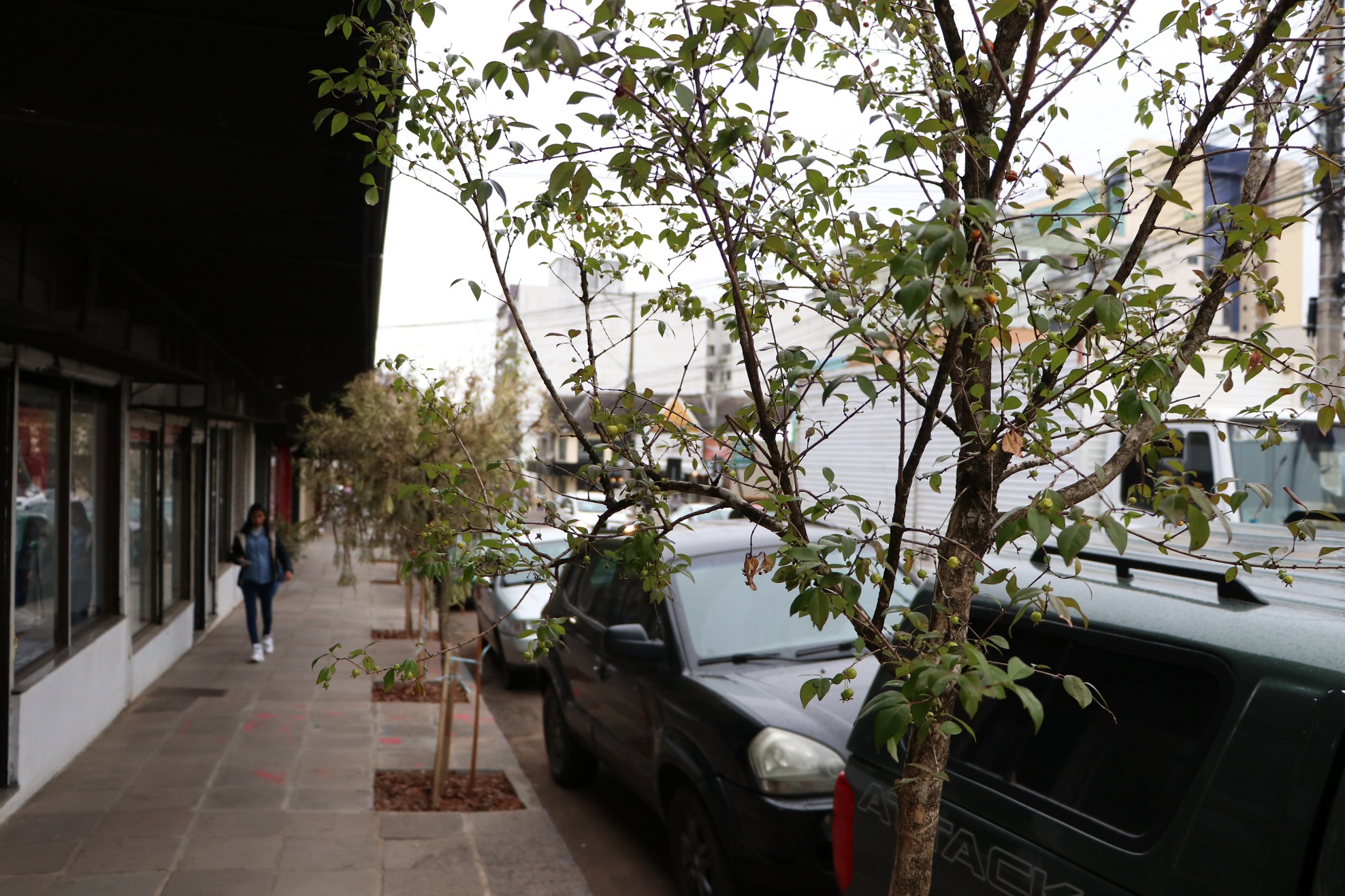 A Prefeitura de Lajeado concluiu os plantios de árvores nas calçadas recuperadas na rua Bento Gonçalves, entre as ruas Saldanha Marinho e Pinheiro Machado, no
