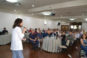 Antes da palestra ainda, a vice-coordenadora do Arranjo Produtivo Local (APL) Alimentos de Bebidas do Vale do Taquari, Leonita dos Santos Boüffet, destacou a importância do APL. “Reunimos as empresas que produzem, que fazem parte da cadeia produtiva de alimentos e bebidas, com o propósito de fortalecer o setor na região. Somos o Vale do Alimentos e queremos trazer mais competitividade para as empresas, mas trabalhando de forma cooperativa e colaborativa”, frisou.